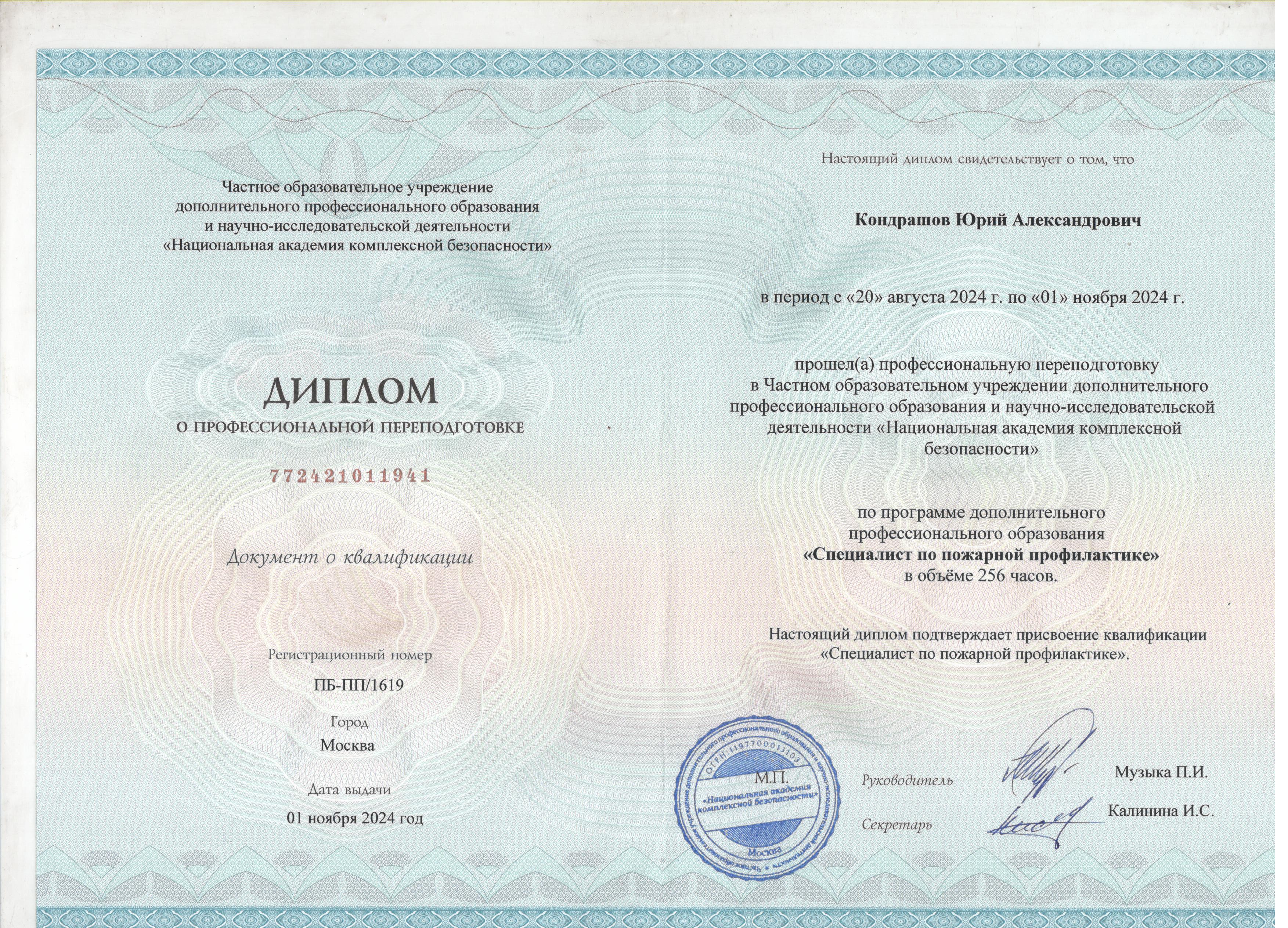 Профессиональная переподготовка "Специалист по пожарной профилактике". 256 часов 01.11.24г. №ПБ-ПП/1619.